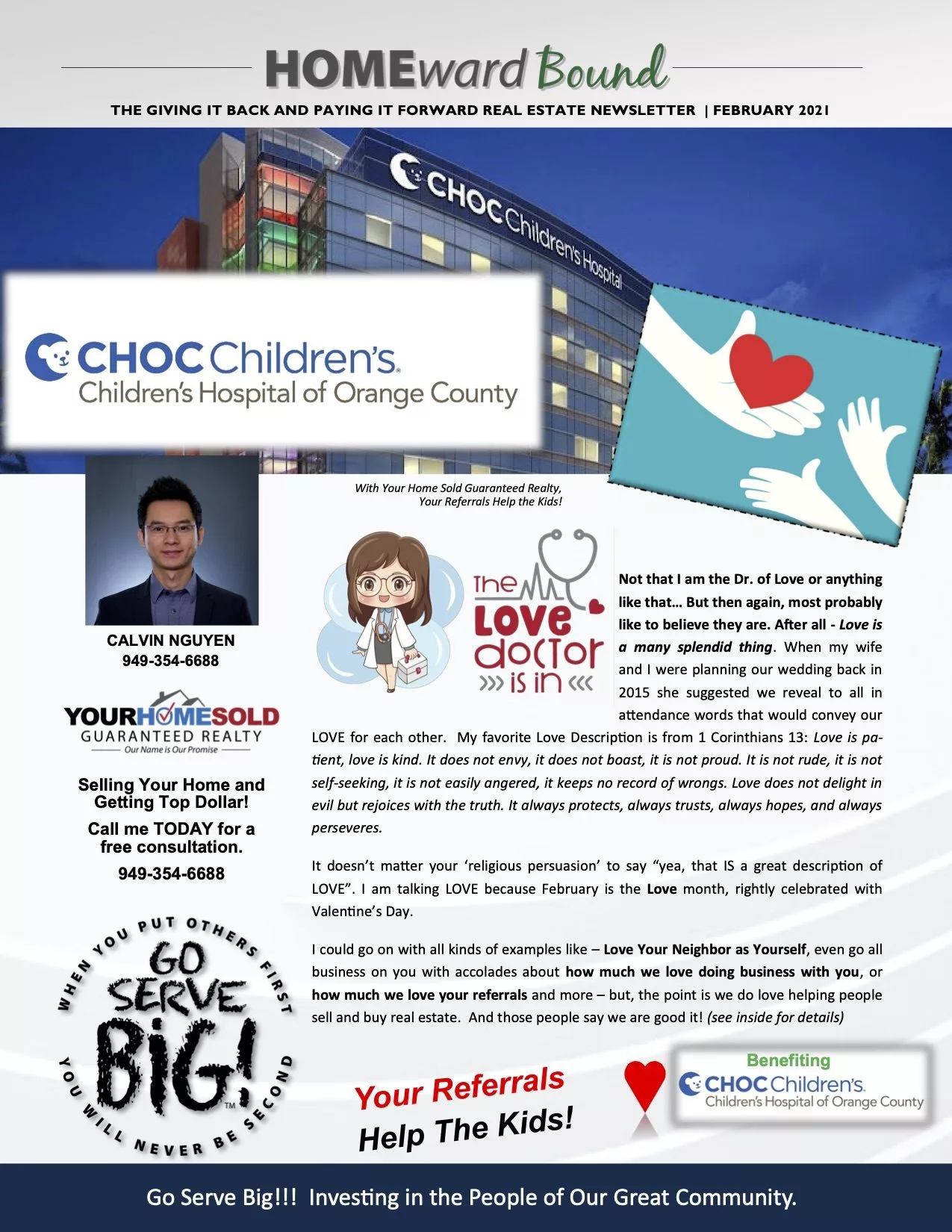 Just like last year, we are on a mission to raise $25,000 for Children’s Hospital of Orange County. We do this by donating a portion of our income from homes we sell. As you know Children’s Hospital of Orange County does great work in helping kids fight through and survive nasty life-threatening diseases like cancer, Non-Hodgkin’s lymphoma, leukemia and others.