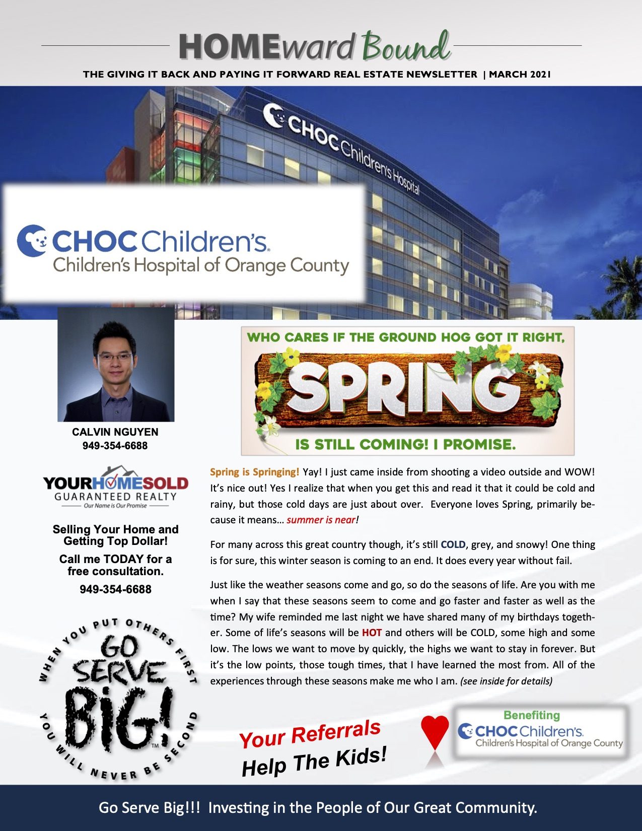 Just like last year, we are on a mission to raise $25,000 for Children’s Hospital of Orange County. We do this by donating a portion of our income from homes we sell. As you know Children’s Hospital of Orange County does great work in helping kids fight through and survive nasty life-threatening diseases like cancer, Non-Hodgkin’s lymphoma, leukemia and others.