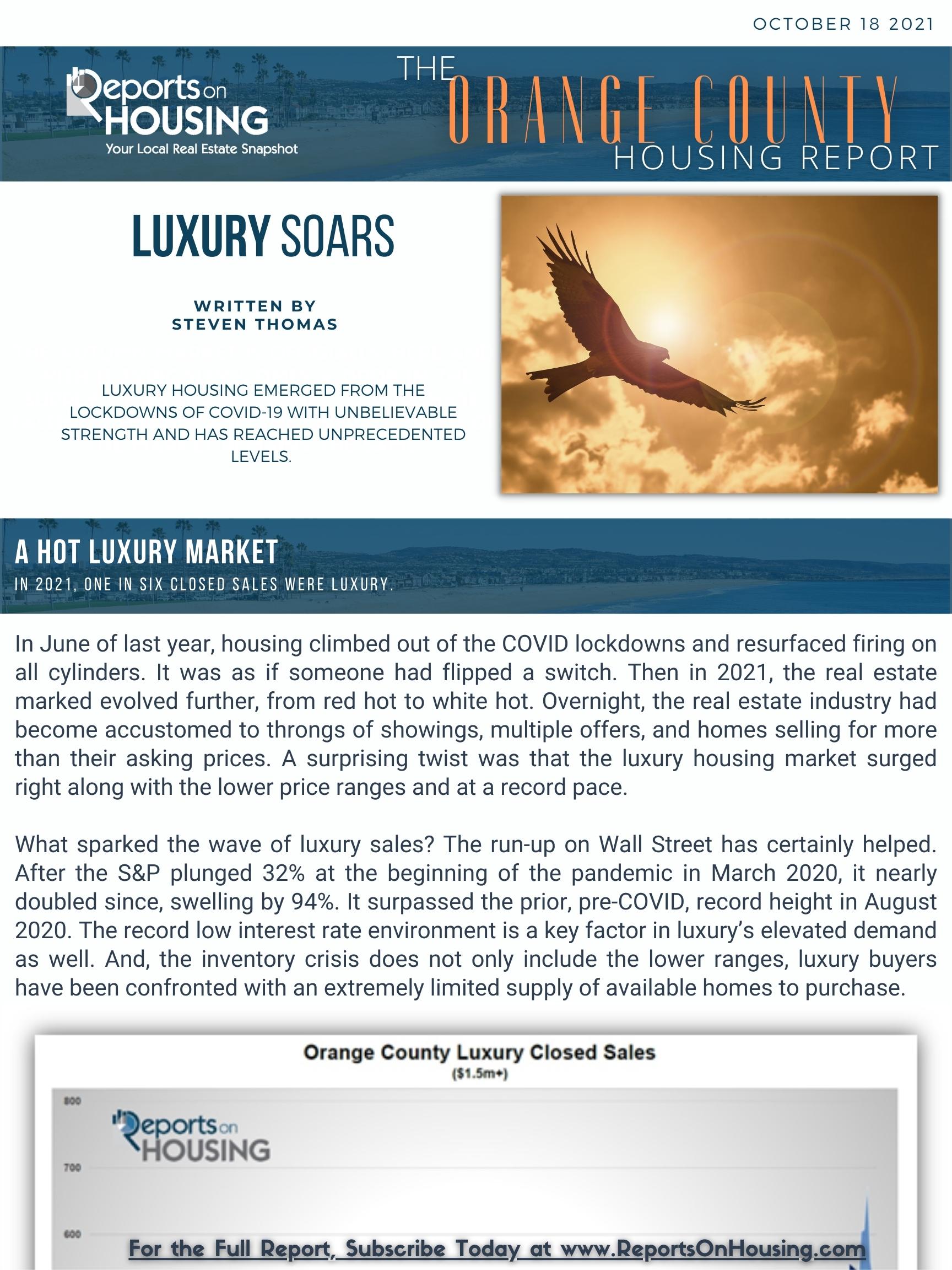 What sparked the wave of luxury sales? The run-up on Wall Street has certainly helped. After the S&P plunged 32% at the beginning of the pandemic in March 2020, it nearly doubled since, swelling by 94%. It surpassed the prior, pre-COVID, record height in August 2020. The record low interest rate environment is a key factor in luxury’s elevated demand as well. And, the inventory crisis does not only include the lower ranges, luxury buyers have been confronted with an extremely limited supply of available homes to purchase.
